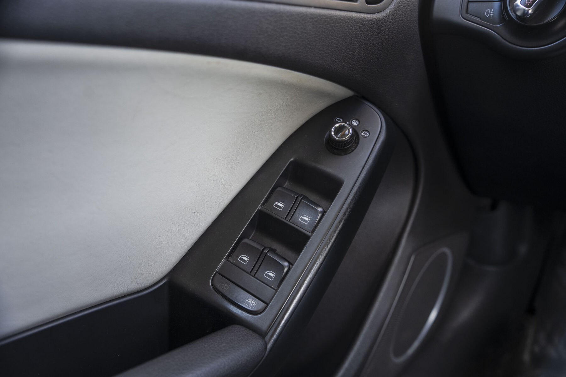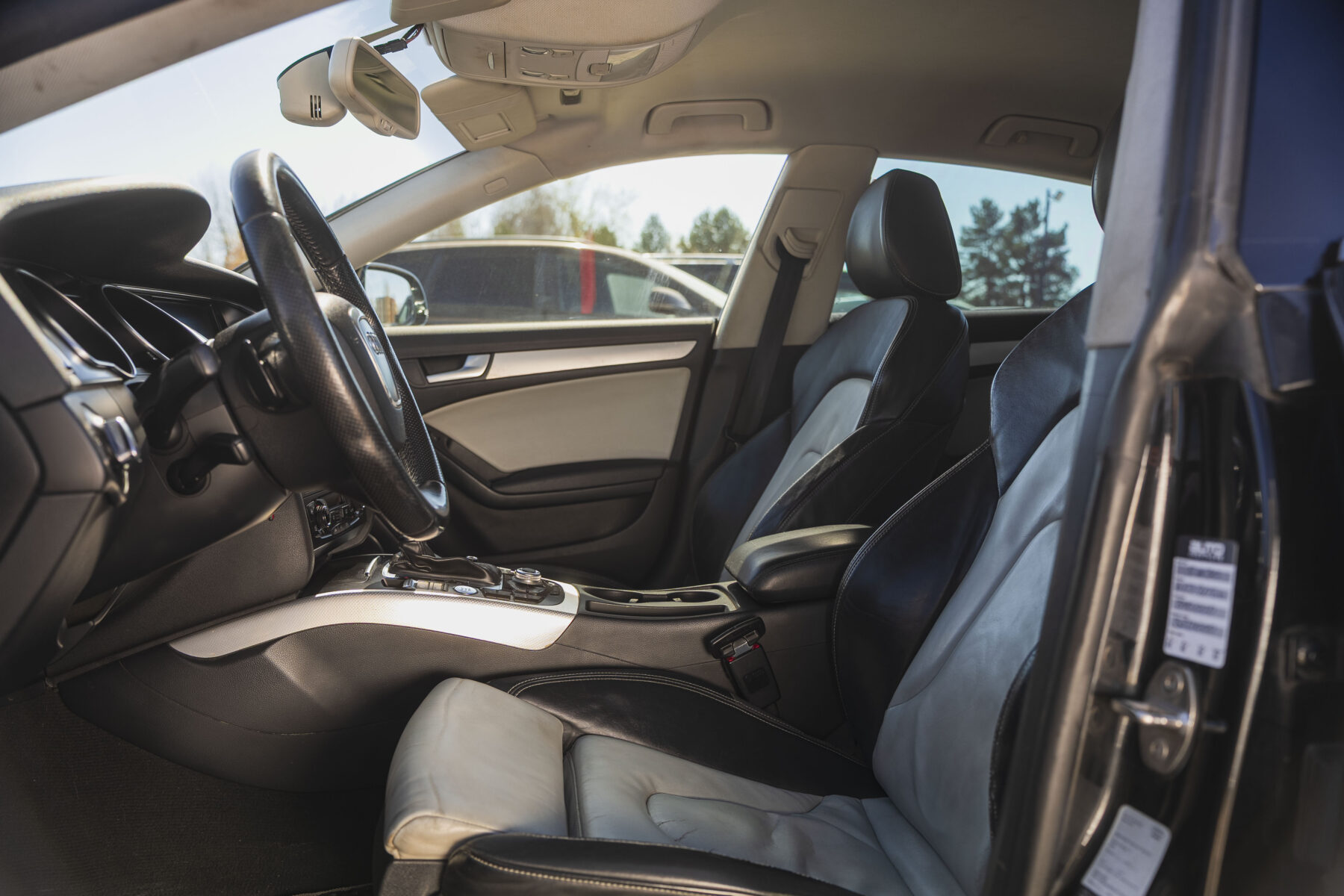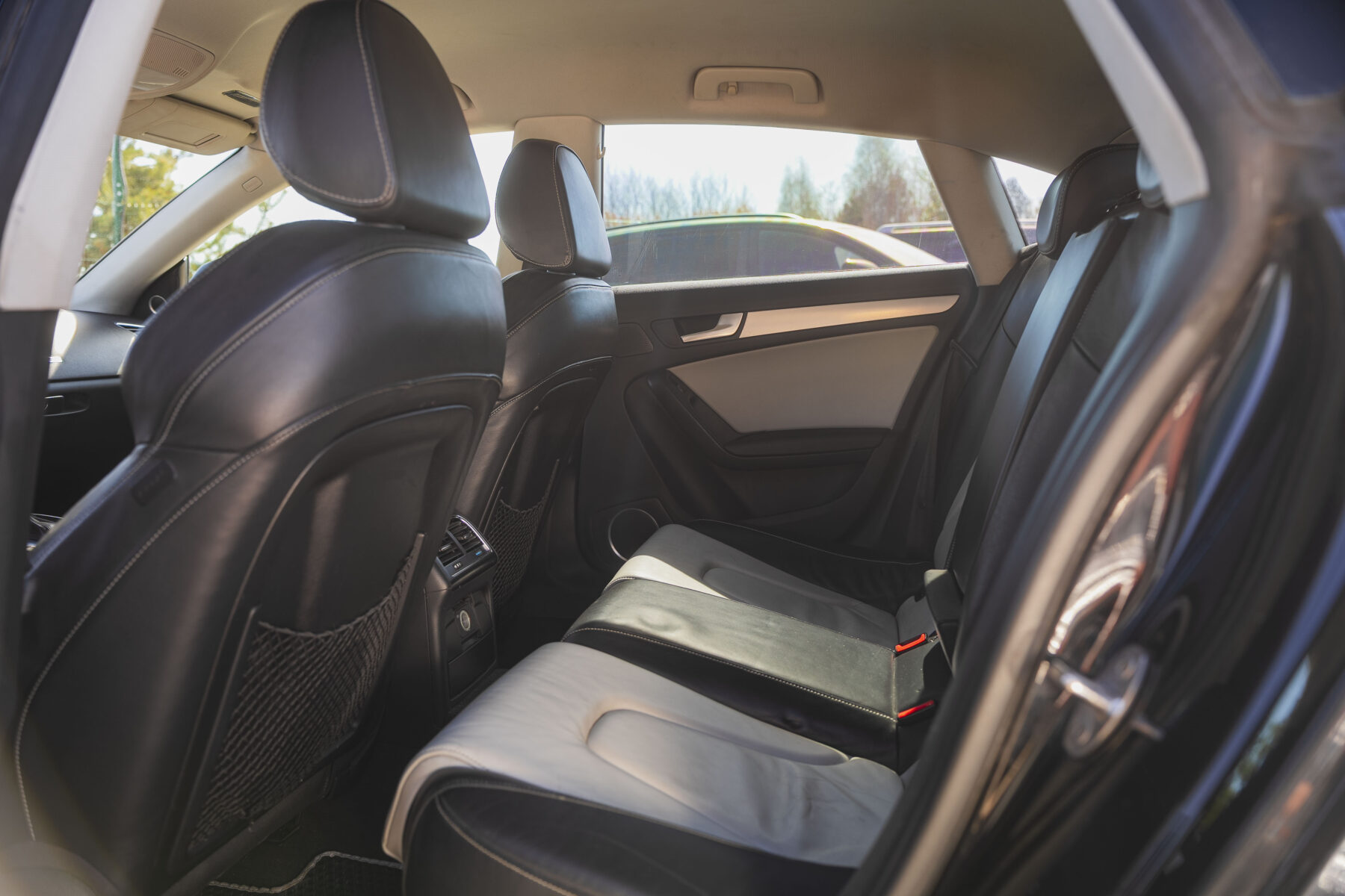 Tumšs divu toņu ādas sporta tipa salons.