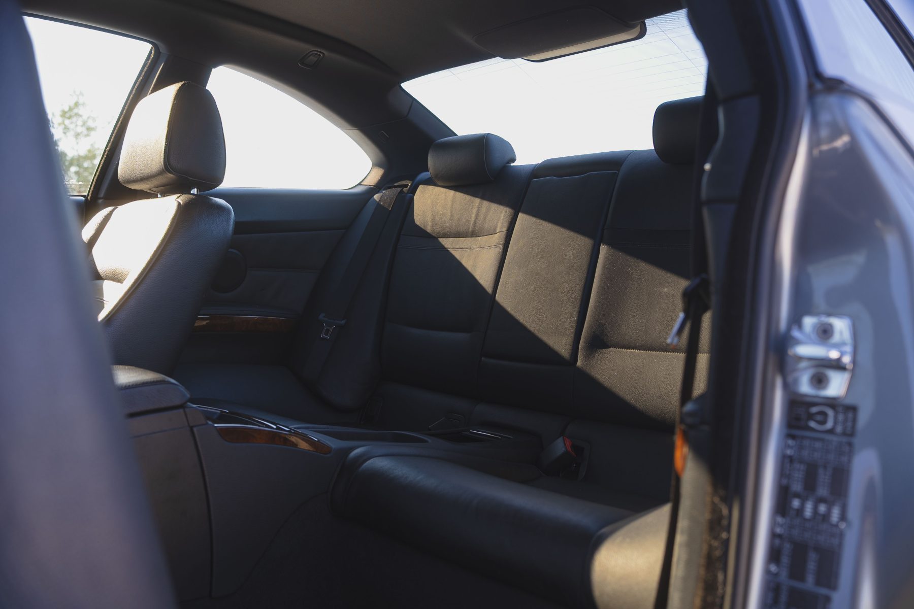 Melns ādas salons ar melnajiem griestiem.