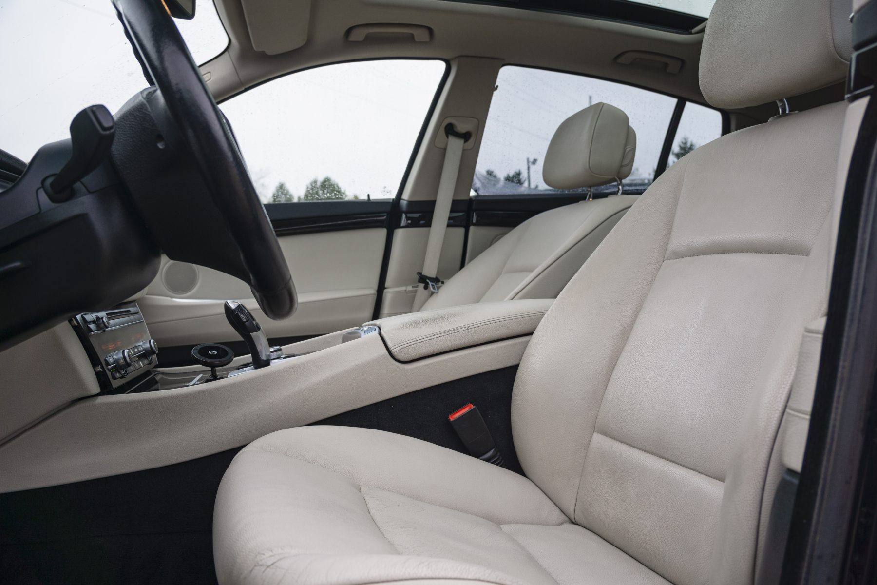 -Gaišs ādas sporta tipa salons.